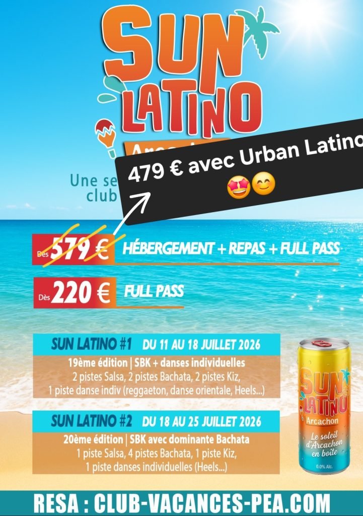 Sun Latino à Arcachon, c’est une parenthèse ensoleillée dédiée à la danse, où rythmes latinos, cours en plein air et soirées SBK font vibrer vos vacances au bord de l’océan.