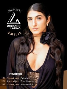 Chez Urban Latino Dance Studio elle propose des cours de Street Jazz et Lyrical Jazz pensés comme une expérience collective : un espace bienveillant, sans jugement, où chacun·e peut progresser, oser et s’épanouir, tout en partageant l’énergie et le plaisir du show.